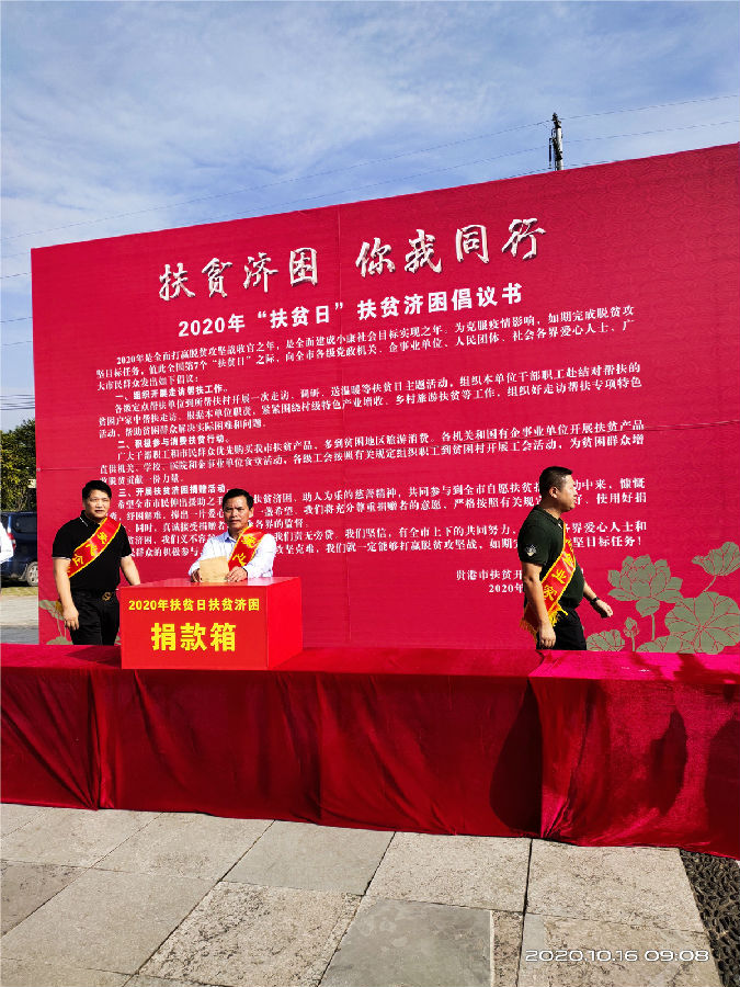 完美在线手机版(大中国区)董事长杨文友代表集团参加全国“扶贫日”贵港市系列活动,并作为爱心企业进行捐款,承担民营企业社会责任。