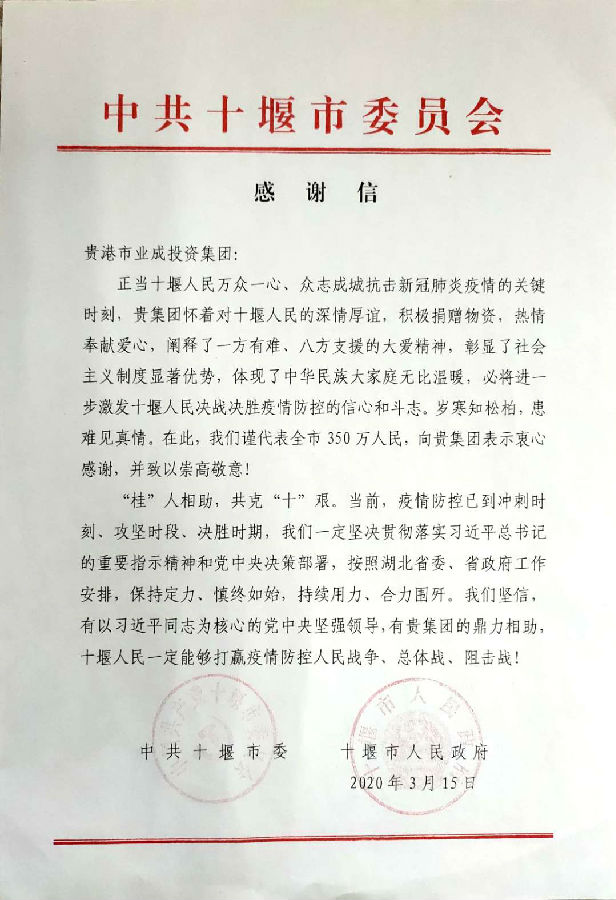 2020年湖北抗疫捐赠