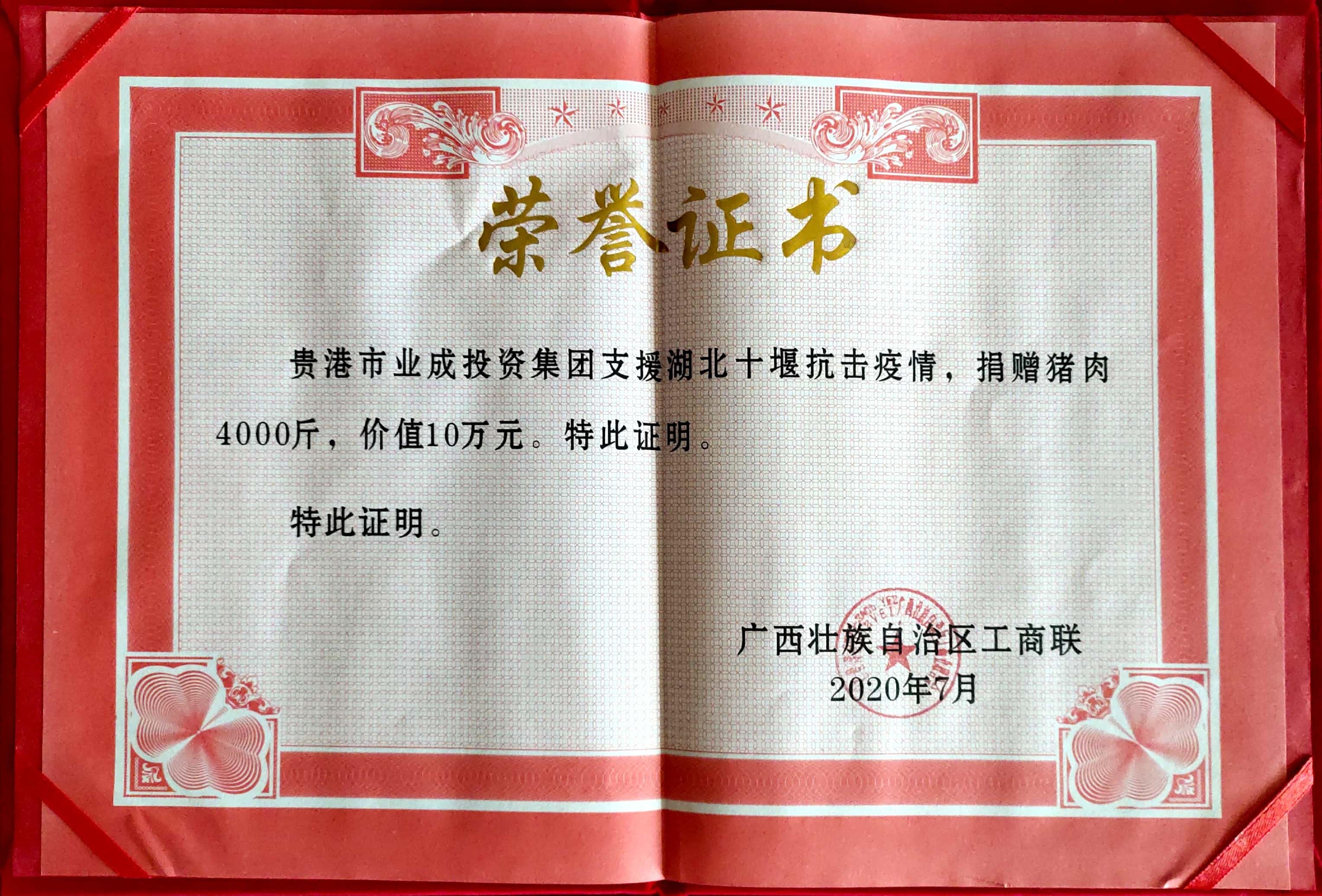 2020抗疫捐赠证书
